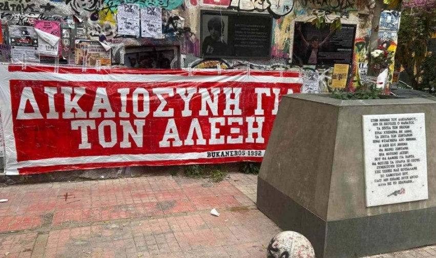 Οπαδοί της Ράγιο Βαγιεκάνο βρέθηκαν στο μνημείο του Γρηγορόπουλου – «Δικαιοσύνη για τον Αλέξη»